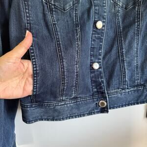 Chicos Womens Blue Jean Denim Jacket Size 1/Medium Dark Wash Stretch Cotton