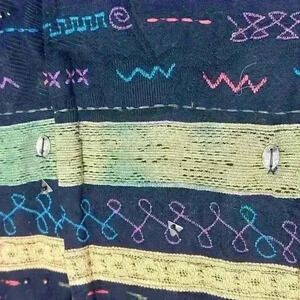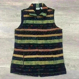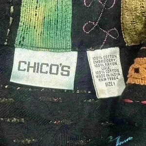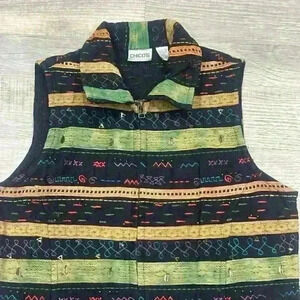 Chicos Womens Bohemian Vest Multicolored Sleeveless Embroidered Full Zip Sz 1 Boho Chic Beads Cottagecore Campcore