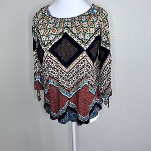 Chico’s Women’s Boho Flared Tied Sleeve Size 0 Top Can Be Worn Off Shoulder