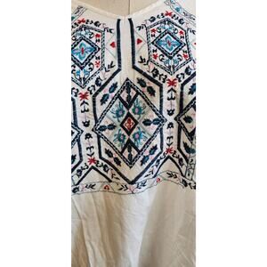 Chico's Women's Boho Floral Embroidered Pullover Top Size 1 Medium White Blue
