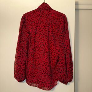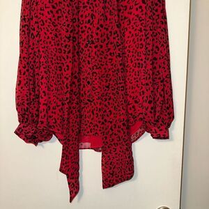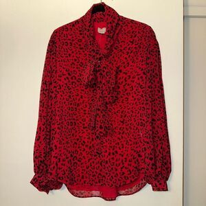 Chicos Women’s Bow Button Blouse Red Black Size 0 (Small) NWT