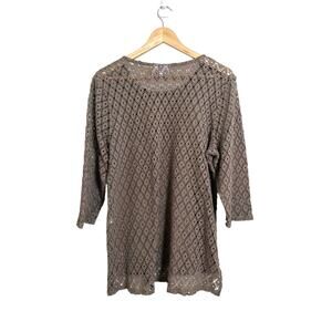 Chico's Women's Brown 3/4 Sleeve Mesh Casual Shell Blouse Size 3 (XL)
