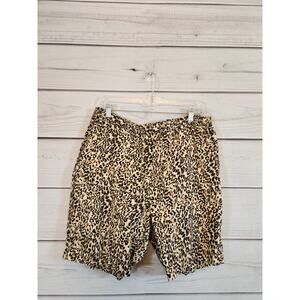Chicos Womens Brown Animal Print High Rise Linen Drawstring Chino Shorts Size 12