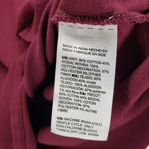 Chico's - Women's Burgundy with Floral Embroidery Contrast Long Sleeve Top Size 3. Knit Cotton, modal fabrics. Woven 100%Cotton. Decoration Polyester, other fiber. Approx. measurements pit to pit 20.5 in. in. Sleeve length 20.5 in. Top length 28 in. Pre- owned in good condition, no holes or stain.