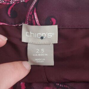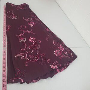 Chicos Womens Burgundy Floral Midi Skirt Size 2.5 US 14 Pleated Career Business