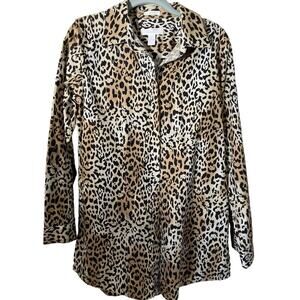 Chico's Women's Button Down Tunic Animal Print Tabbed Roll Up Sleeve Sz Sm