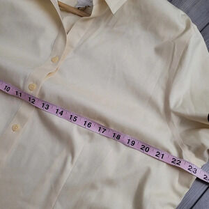 NWOT Chico's Women's Button-Up Top Large Pale Yellow No Iron 100% Cotton Solid Long Sleeves Collared