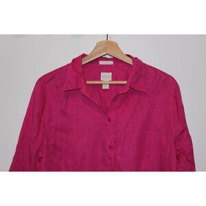 Chicos Womens Button-Up Fuchsia Linen Shirt Size 2x
