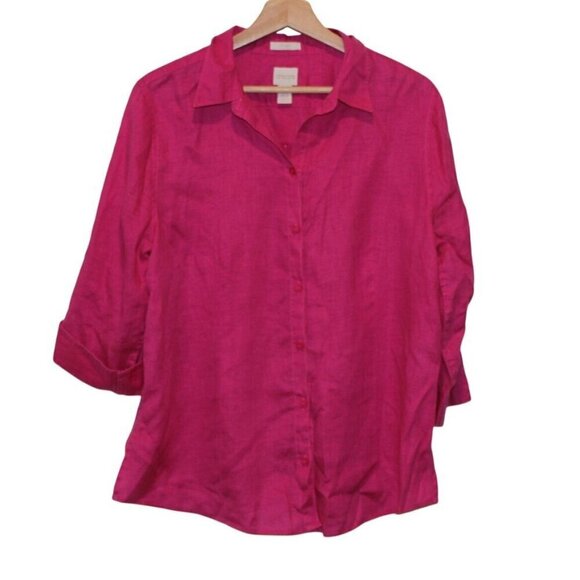 Chicos Womens Button-Up Fuchsia Linen Shirt Size 2x