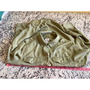 Chicos Womens ButtonUp Shirt Small Size 0 Olive Green Front Pockets Cabincore