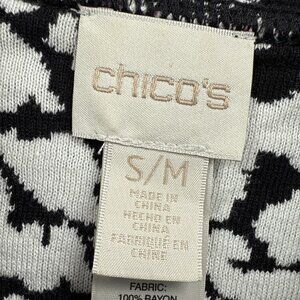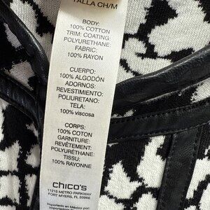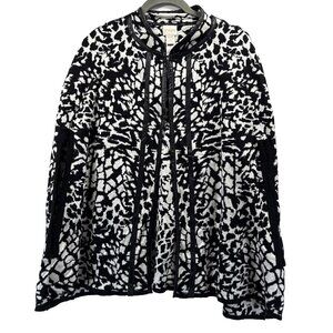 Chicos Women's Cape Size Small Medium Black White Pleather Trim Hook Eye Close