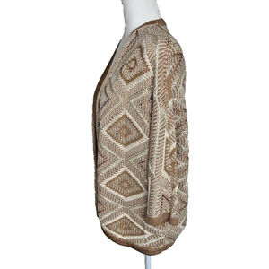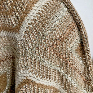 Chicos Womens Cardigan Gold Metallic Ivory Beige Open Front Lightweight Medium