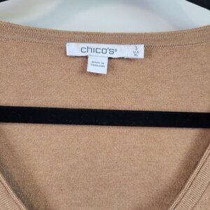 Chico's Women's Cashmere Blend Puffed Tiered Sleeve Detail Camel Sweater Size XL