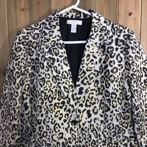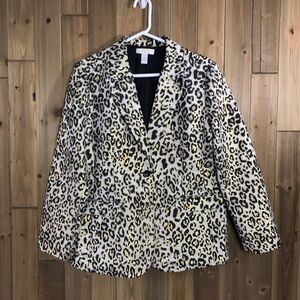 Chico’s Womens Cheetah Animal Print Jacket Metallic One Button Chico’s Size 2 L/12