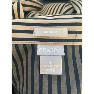 Chico’s Women’s Collar Shirt Sz 3 (16) No-Iron Sateen Striped Button Down blk