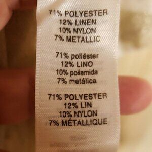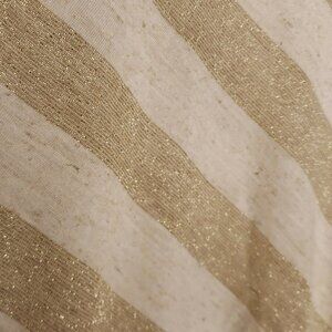 Chico’s women’s cream gold sparkle stripe short sleeve v neck knit top small. Gently used condition. Measurements are: 23 ½" from shoulder to hem, and 20” from armpit to armpit.