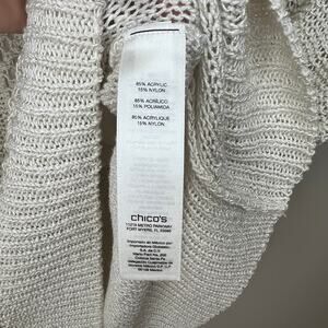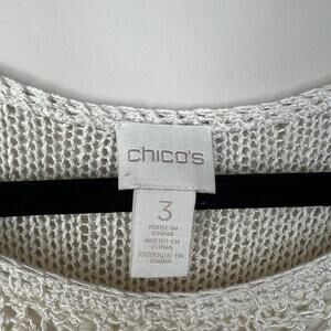 Chico's Women's Cream Open Weave Short Sleeve Crochet Pullover Sweater SZ 3/XL
