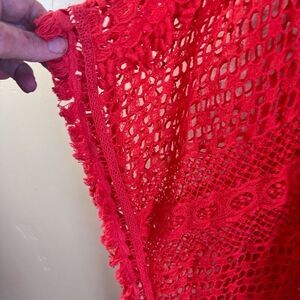 Chico’s Womens Crocheted Swim Beach Knit Cover Up Cherry Red VNeck Pullover OS