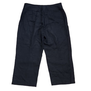 Chico's Womens Crop Capri Pants Size 2 Large 12 Solid Black Embossed Linen