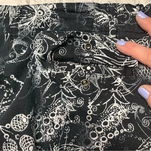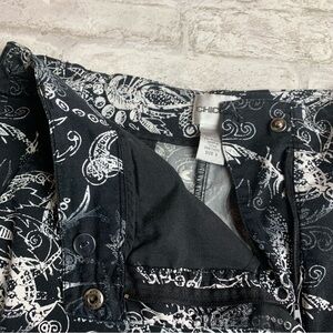 Elevate your fashion game with these Chico's Women's Crop Pants. These pants are perfect for any season, whether it's summer, fall, or spring. The black and white cargo design with paisley pattern and flat front gives off a chic and trendy vibe. The pants feature a zip and button closure, making it easy to put them on and take them off.