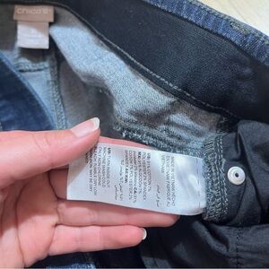 Chicos Womens Dark Wash Elastic Band Distressed Skinny Jeans Size 1/8