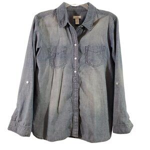 Chico’s Women’s Distressed Stonewash Roll Tab Sleeve Button Front Shirt – Size 1