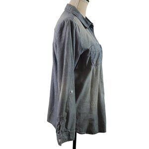 Chico’s Blue Distress Stonewash Button Front Shirt