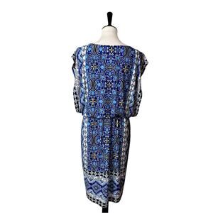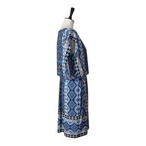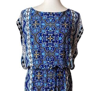Chico’s Women’s Dress Blouson Waist Dolman Sleeves Blue Multi Size 1 - Small