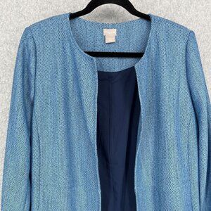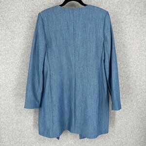 Chicos Womens Elongated Indigo Open Front Jacket Size M/8/10 Blue Office Classic