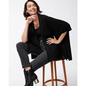Chicos Womens Embroidered Eyelet Sweater Ruana Poncho Black size Small Medium