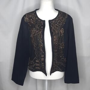 Chico's Women's Embroidered Open Front Cropped Jacket Black XS