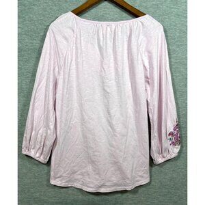 Chicos Womens Embroidered Paisley Tunic TopPink Boho Tassels Size 1 / M