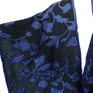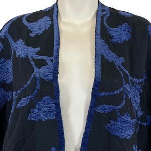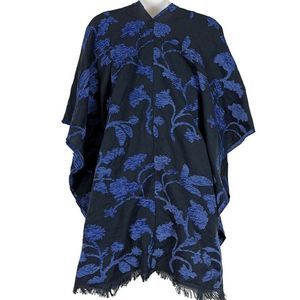 Chicos Womens Floral Chenille Jacquard Ruana Wrap Poncho Kimono Blue One Size