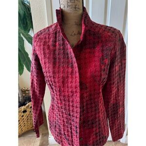 Chico's Women's Floral Cotton Blend Tapestry Blazer Jacket Red Size Medium