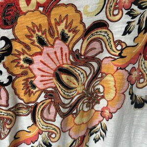 Chico's Women's Floral Elbow Sleeve A-Line Tee Sz 0 Multicolor Fall V-Neck Comfy