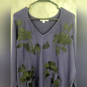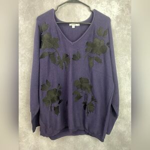 Chico's Women's Floral Embroidered Pullover purple Sweater Size XXL