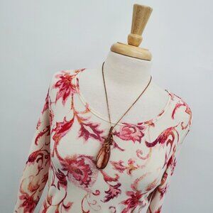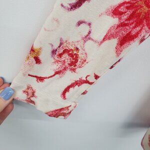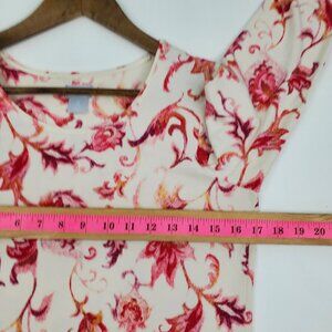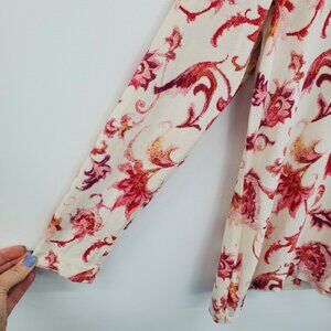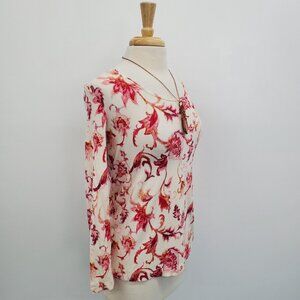 Chico's Womens Floral Layering Tee T-Shirt Size 0 Small Long Sleeve Pink White
