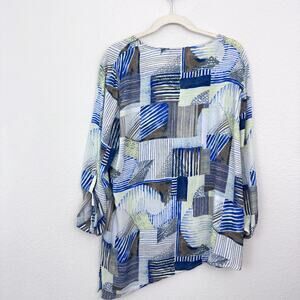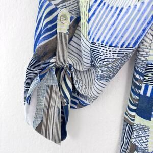 Chico's Womens Flowy Blouse Top Size XL Geo Print Classic Office Career Blue