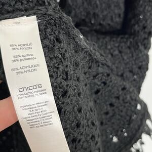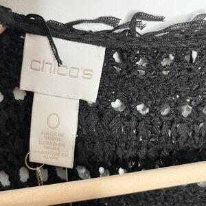 Chicos Womens Fringe Francine Vest Small Black Open Front Boho Layering Knit