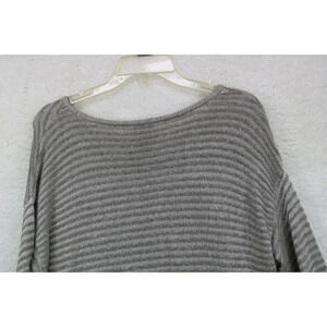 This is a Women's Chico's Fringed Pullover Sweater that is a size 2 or Large. It is very textured and soft. It is 55% Cotton and 45% Polyester. Laying flat, it measures: Armpit to armpit-22" and the length is 26". It is ivory and beige, very neutral colors. In good condition.