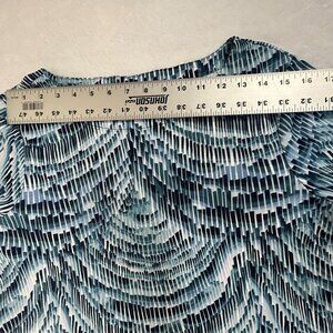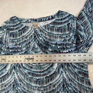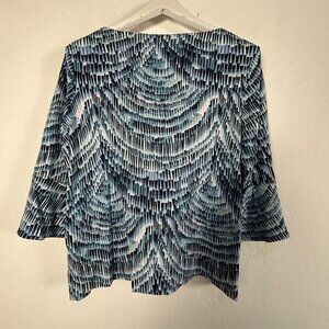 Chico's Womens Geometric Print Bell Sleeve Top Size 2, Large Blue 100% Cotton
