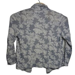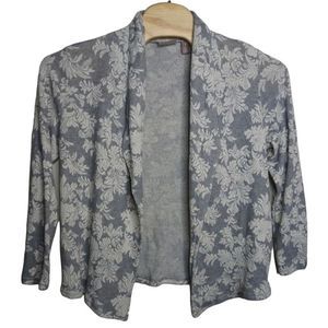 Chico's Women's Gray Damask Jacquard Sz 1 Floral Open Applique Cardigan Sweater