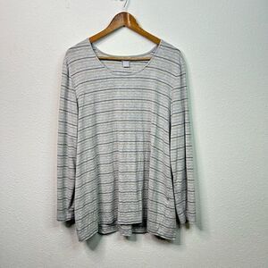 Chicos Women’s Gray Gold Shimmer Striped Long Sleeve Rayon Top Size 4 (XXL)