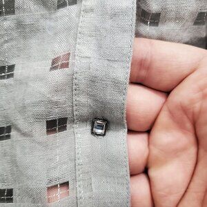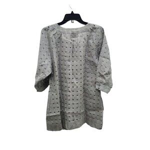 Chico's Women's Gray Sheer Detail Metallic Linen Blend Gem Button Tunic 0 (S/4)