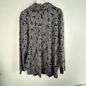Chico's Womens Gray/Black Floral Print Cowl Neck Long Sleeve Top Size 3 Stretch