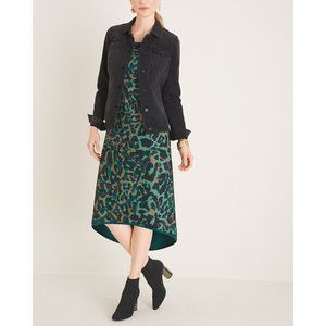 Chicos Womens Green Leopard Animal Print High Low Hem Dress size 0 2