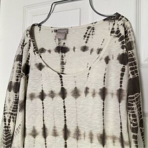 Chico's Women's Green and White 3/4-Sleeve Tie-Dye Cotton Top