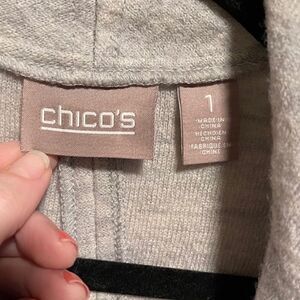Chico’s- Women’s Grey Knit Wool Waterfall Open Front Cardigan, Size 1 = US 6