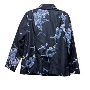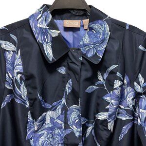 Chicos Womens Hihg Seas Floeal Navy Full Zip Rain Jacket Size 1