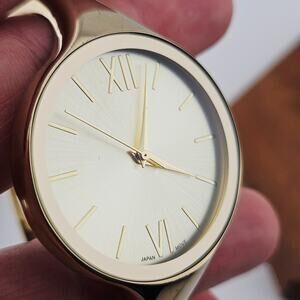 Chicos Women's Hinge Style Bracelet Watch Gold Tone Minimalist Roman Numeral